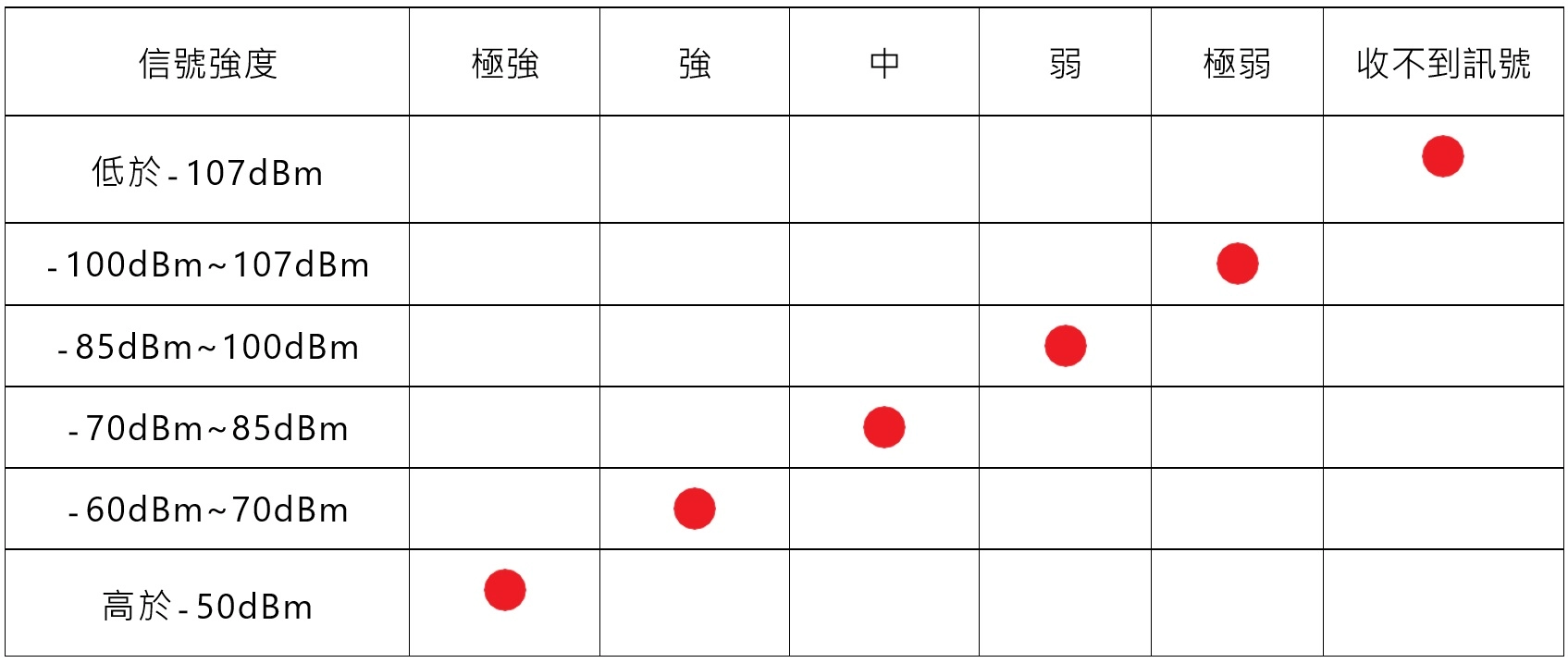 環境信號強度或場強對照表